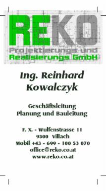 "Die Heilkraft steckt in dir" ( Horst Krohne ) Planung, Ausschreibung, Bauleitung Mobil 0699 10053070 REKO Projektierungs- und Realisierungs GmbH F.-X.-Wulfenstrasse 11, 9500 Villachwww.reko.co.at