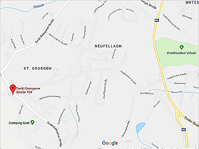 Zufahrt: Villacherstrasse (B86) bis zur Pogöricherstrasse (Raika). Auf der Pogöriacherstrasse bis zur St. Georgenerstrasse, dann links abbiegen. Das erste Haus auf der rechten Seite ist die St. Georgenerstrasse 104.